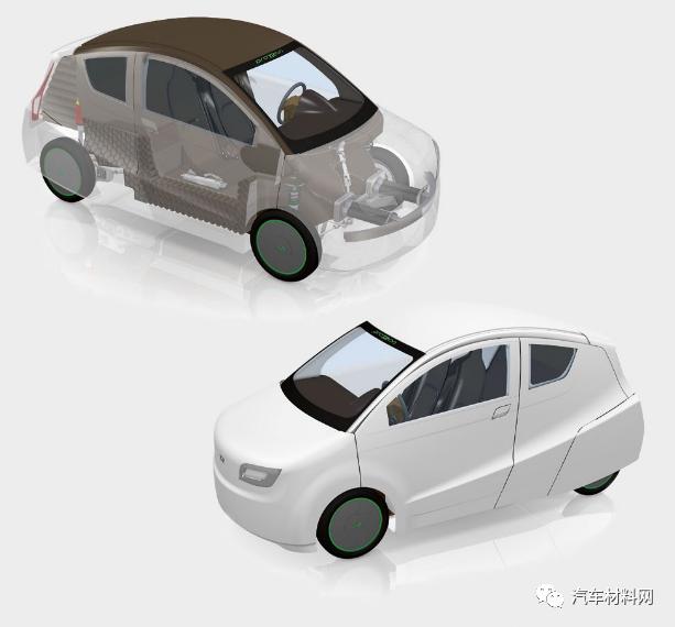 德國特里爾應用科技大學(TheTrier University of Applied Sciences)的一個研發團隊針對當地的交通狀況(theproTRon Evolution),開發了一款高能效電動汽車。該車的結構件和外覆蓋件由天然纖維增強復合材料(NFRP,NaturalFiber ReinforcedPlastic)制成。雖然亞麻纖維增強復合材料的強度有限,一般用于低負載部件,但通過優化的結構設計,該車輛仍滿足了歐洲M1道路的碰撞安全要求。